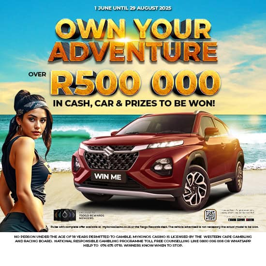 Make sure to enter YOUR TICKET TO FUN at Mykonos Casino from 1 Oct until 16 Jan 2026. Our Tsogo Rewards members are in for quite a ride, as we’re giving away OVER R600 000 in Cash & Prizes, including a brand new Toyota Starlet Cross– pretty great, right? It’s Your ticket to FUN!